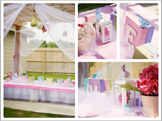 The party was decorated with fairy houses, hanging hydrangea balls, tulle, ribbons, butterflies, flowers, and big blocks that read "BELIEVE" (for fairies), "DREAM" (for ballerinas), and "WISH" (for princesses)... Almost all the table-top decor came from a wonderful neighbor of mine who traded a family photo-shoot for a bedroom full of decor. I think I got the better end of the deal for sure!